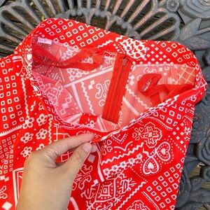 Vintage 1960s 1970s Red White Western Bandana Patchwork Print Wide Pants Size XXS or size 0