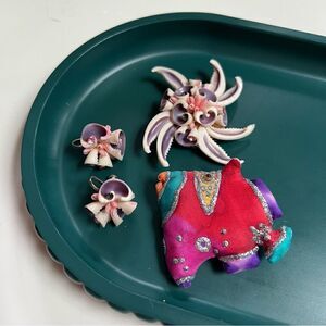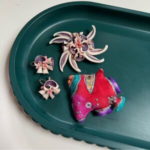 Vintage 1960s - 1980s Handmade Tropical Fish and Shells Brooch and Earrings Lot