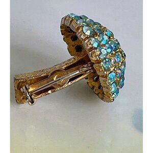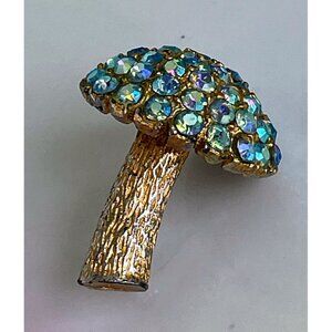 Here for your consideration is a nice vintage 3D AB rhinestone mushroom Brooch. It measures 1" tall and 1" across. It has no missing stones and is in good wearable vintage condition.