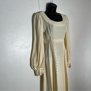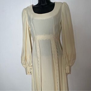 Vintage 1960s 70s Boho Cream Gunne Sax Puff Sleeve Lace Maxi Prairie Dress S