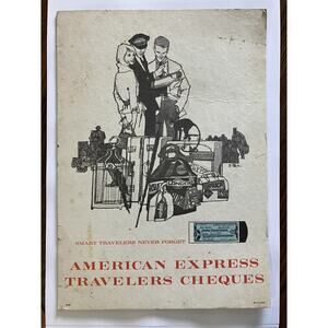 Vintage 1960s Ad Print Bob Peak Art On Board 14x10” Sign AMEX Travelers Cheques