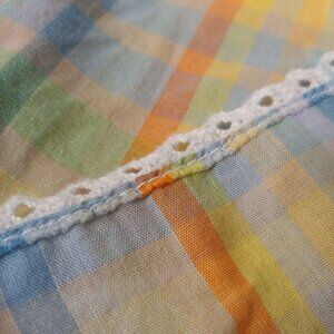 Vintage 1960's Apron Bright Yellow Lined Orange Blue Green Plaid Retro Kitchen