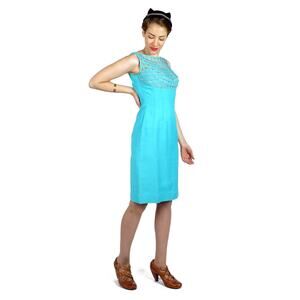 Vintage 1960s Aqua Blue Wiggle Dress Lattice Illusion Bodice Lilli Diamond | S