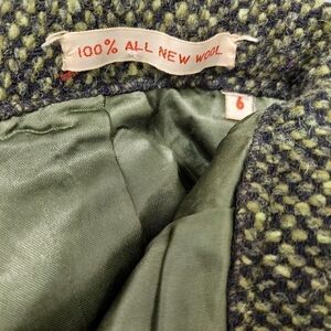 Vintage 1960's Size 6 Waist 24" Army Green 100% New Wool Zipper Pleated Skirt.