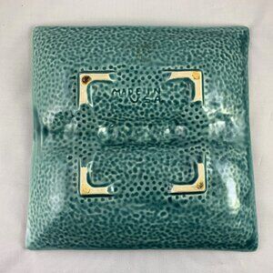 Vintage 1960's Ash Tray, Glazed Ceramic, Sushi Plate, MCM, Turquoise, Drip Glaze