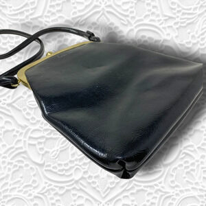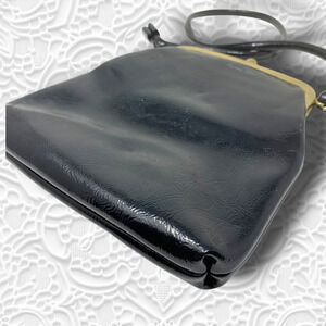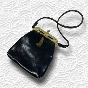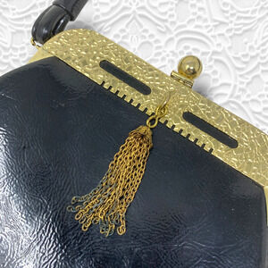 Vintage 1960's Black Patent Leather Ornate Gold Frame Tassel Kisslock Bag Purse