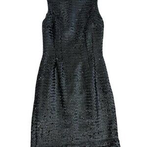 Turn heads in this dazzling vintage little black dress, dripping in sequins from shoulder to hem. Made in New York by Parade, this fully sequined sheath dress embodies mid-century glamour with its classic sleeveless cut, fitted silhouette, and knee-length finish.