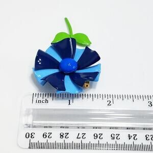 Vintage 1960s Blue Enamel Flower Brooch Green Stem Pinwheel Mod Floral Jewelry