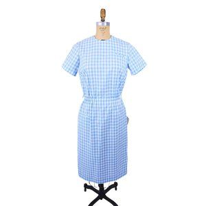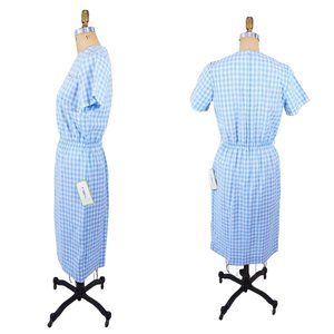 Vintage 1960s Blue Gingham Dress Deadstock Sheath | W 27"+