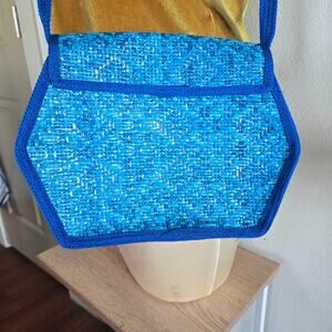 An absolute gem from the 1960s, this structured hexagonal handbag is a rare mid-century modern piece by Vanessa for Fashion Imports, made in Italy. Featuring a beautiful woven blue exterior with a firm shape and vintage clasp closure, this bag brings instant retro charm to any outfit.