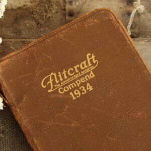 Charming vintage book, "Flitcraft Compend 1934, Prominent Life Insurance Companies" by A Flitcraft of Flitcraft Insurance. Considered the authority of insurance this compendium is a collection of terminology and information. Leather bound and just beautiful. Published first in 1988, I believe, this edition is the 47th annual edition published in 1934. About 6" x 4". 589 pages plus ads in the back.
