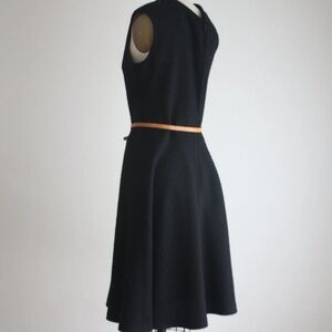 Vintage 1960s black boucle wool dress with a smooth, soft interior. cowl neck. zip up back. belt not included