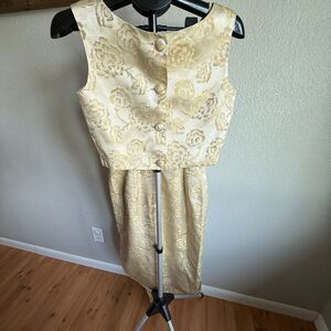 Vintage 1960s Brocade Union Made Formal Prom Party Cocktail Dress Maxi Size XS/S