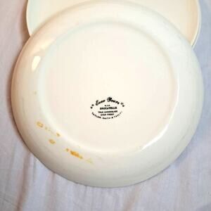 Please see photos for condition. There is 1 plate with the yellow marks on back, shown in photos. Otherwise, normal utensil wear for 60 year old plates. No cracks, chips, breaks or repairs.
