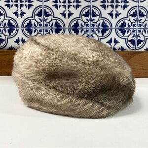 Soft, structured, and effortlessly chic — this vintage 1960s faux fur pillbox hat is all about quiet sophistication. A classic rounded silhouette with plush texture, it gives subtle Jackie O energy without trying too hard.