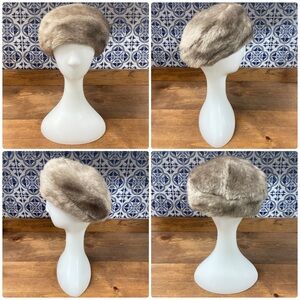 ❄️ Vintage 1960s Brown Faux Fur Pillbox Hat