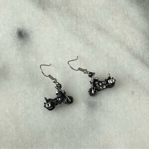 Vintage | 1960s Cast Metal Motorcycle Earrings Silver Tone Black Detailed Rider