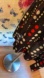 * minor fraying on trim fabric. (see photo) Stylish black dress and jacket set with gray, red and white polka dots. Features a matching attached scarf and open patch pocket details. Lightweight, smooth silky fabric.
