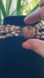 Pretty multistrand (8) gold painted plastic beads (lightweight only 45g) in fall or autumn colors. A gold tone leaf motif on the clasp