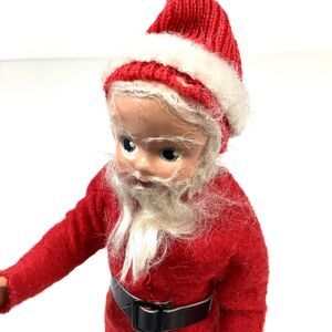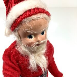 Vintage 1960s Composite Composition Poseable Jointed Articulating Arms Santa. Shows some minor cosmetic wear but overall good condition. The arms are movable at the shoulders. Legs are not movable. Measures approximately 8 inches high. Please see all photos.