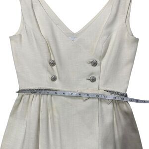 Vintage 1960s Cream Wrap Dress with Bow and Jeweled Belt