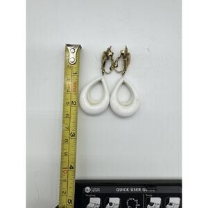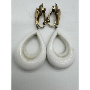 Vintage 1960’s Crown Trifari Gold Tone White Enamel Drop Clip On Earrings 2“