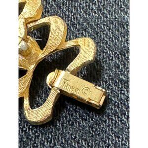 Elegant vintage Trifari bracelet featuring gold-tone metal and faux pearls.