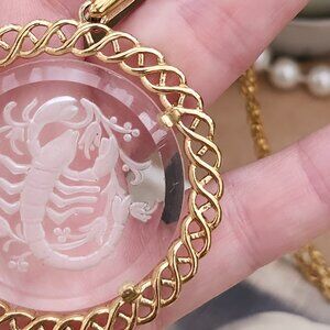 Vintage 1960's Crown Trifari Reverse Intaglio Glass Scorpio Zodiac Pendant