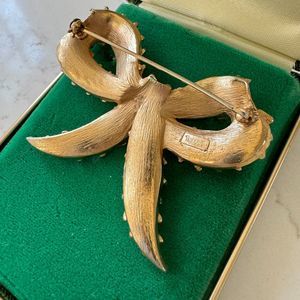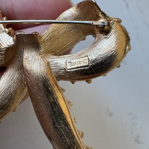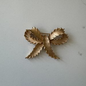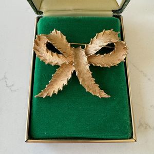 Authentic Vintage 1960s Crown Trifari Textured Gold Bow Brooch With Stitch Detail