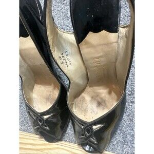 Has some scuff marks and stains inside shoes Authentic vintage 1960s D’Antonio New York slingback pumps in classic black. These elegant heels feature a sleek peep-toe design with subtle cutout detailing, a slim high heel, and a secure slingback strap. Made in New York, D’Antonio shoes were known for quality craftsmanship and timeless silhouettes.