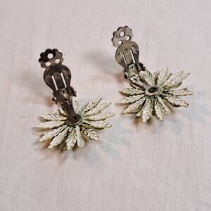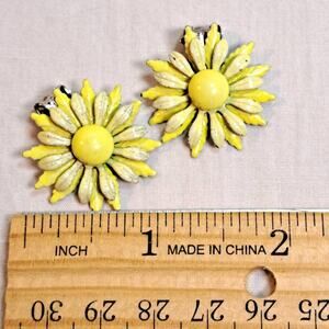 Vintage 1960s Daisy Flower Earrings Yellow Metal Clip On 1" Unmarked.