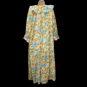Vintage 1960s CRC Housecoat Yellow Floral Lace Trim Likely Silk Lined Robe