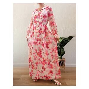 Vintage 1960's Designer Pink Floral Long Sleeve Button Up Maxi Dress