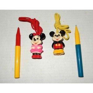 Vintage 1960's Disney Micky & Minnie Mouse Ball Point Writing Pens Made In Korea