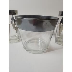 Vintage 1960's Dorothy Thorpe MCM Ice Bucket Silver Rim And Glasses