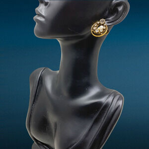 Vintage 1960's Double Circle Rhinestones Earrings Gold Tone Screw Back Carded