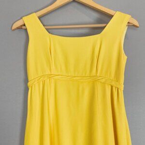 Vintage 1960s Dress Handmade Floral Train Yellow Crepe Empire Waist Bow Back