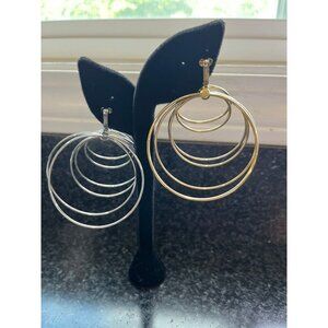 Vintage 1960's EMMONS Clip On Giant Hoop Earrings Silver And Gold 12 Concentric