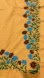This vintage beauty is fabulous with a unique combination of colors embroidered in bright cerulean blue, chocolate brown, and forest green against a vibrant lemon yellow background.