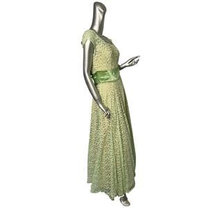 Vintage 1960s Emma Domb Green Lace Evening Gown Medium