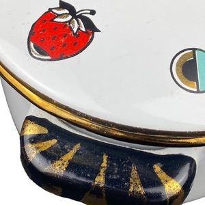 EUC rare vintage mid-century Ambrosia fruit pattern 2 quart enamel stock pot with lid, pattern by designer Georges Briard. Very good condition only small scuff inside at top of pot. See pictures. 5 1/4”x8 1/4”x 7”
