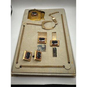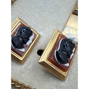 Vintage 1960s Evans Elegance Mens Gold-Tone Roman Cameo Accessory Set
