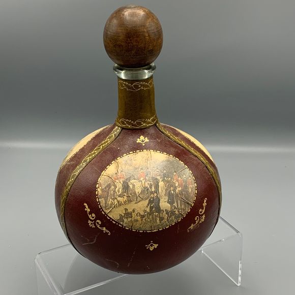 Vintage 1960s Fausto Cordin Leather Wrapped Decanter Hunt Scenes Florence Italy