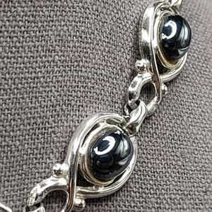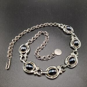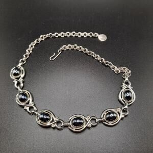 Vintage 1960s Faux Hematite Cabochon Necklace, 15 1/2", Silver Tone