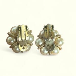 Vintage 1960s Faux Pearl Cluster Clip-On Earrings - Elegant Statement Jewelry