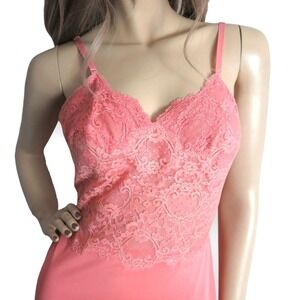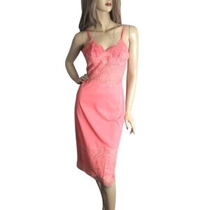 Vintage 1960s Flamingo Pink Lace Slip Dress Small | Fairycore Coquette Lingerie