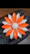 ~ Alternating glossy orange and white petals with a raised, domed, speckled white center.
