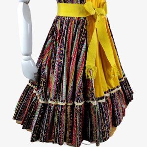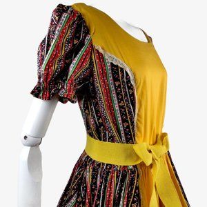 Vintage 1960s Folk Dress Square Dance Western M/L