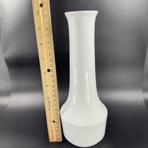 Vintage 1960s German Fine Porcelain White Ribbed Vase Vessel Minimalist Decor