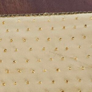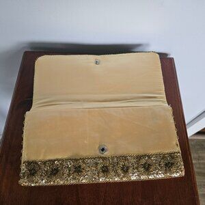 Vintage 1960s Gold Beaded Clutch, Satin Lining, Hand Made in Hong Kong, Great condition...some small marks on the inside lining..look carefully at last picture